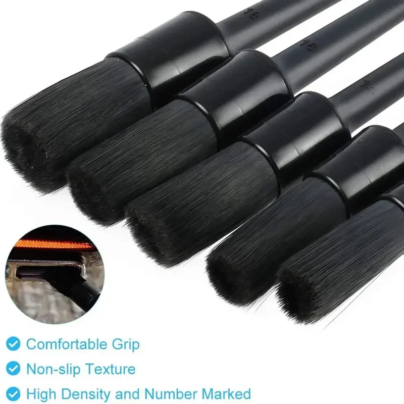 This car detailing cleaning brush set is perfect for both interior and exterior use, helping you clean hard-to-reach areas with ease. Available in 1-piece or 5-piece packs, the soft bristles safely remove dust, dirt, and grime without scratching surfaces. Ideal for wheels, vents, dashboards, and trims, these versatile brushes are durable and easy to handle, making them essential tools for any car care routine.