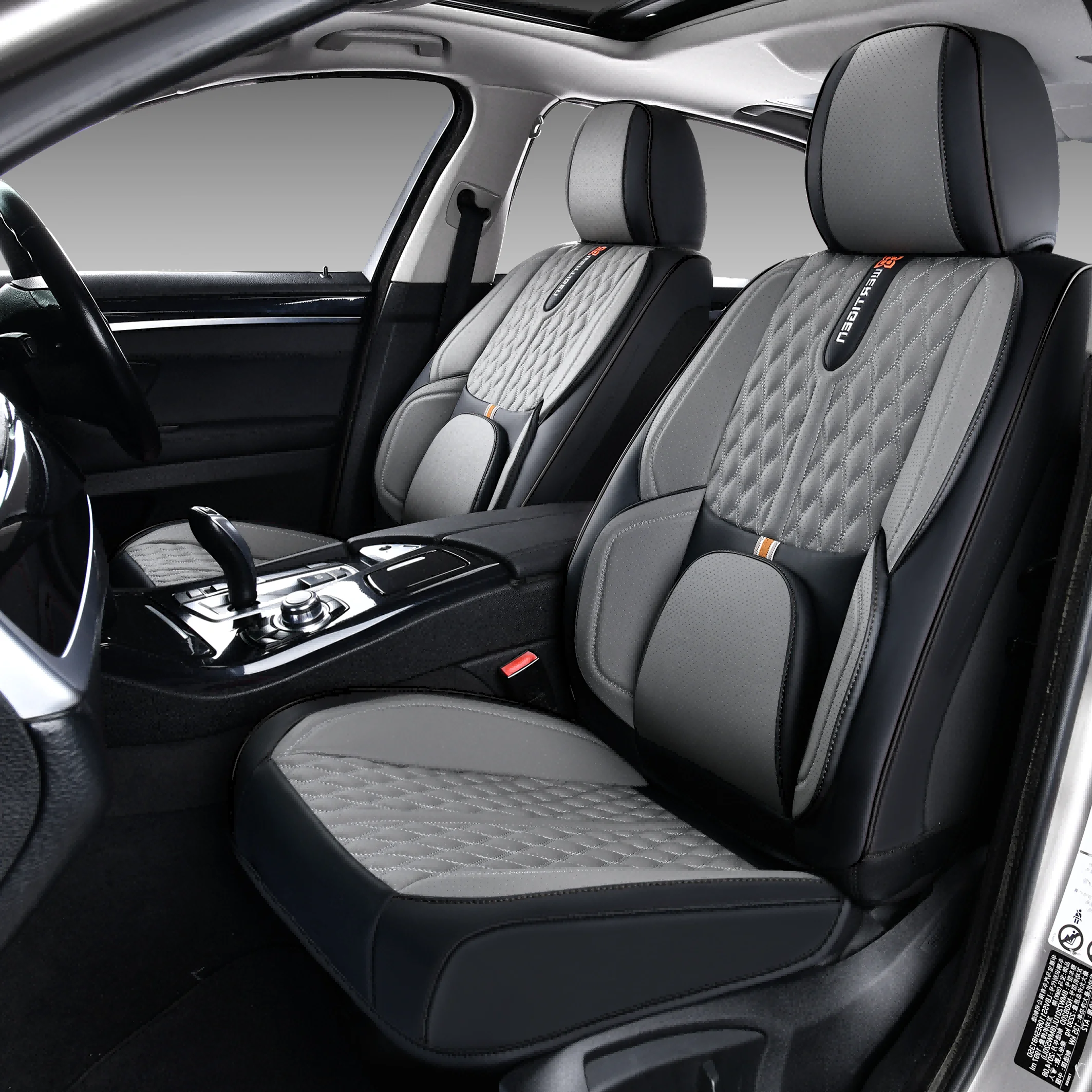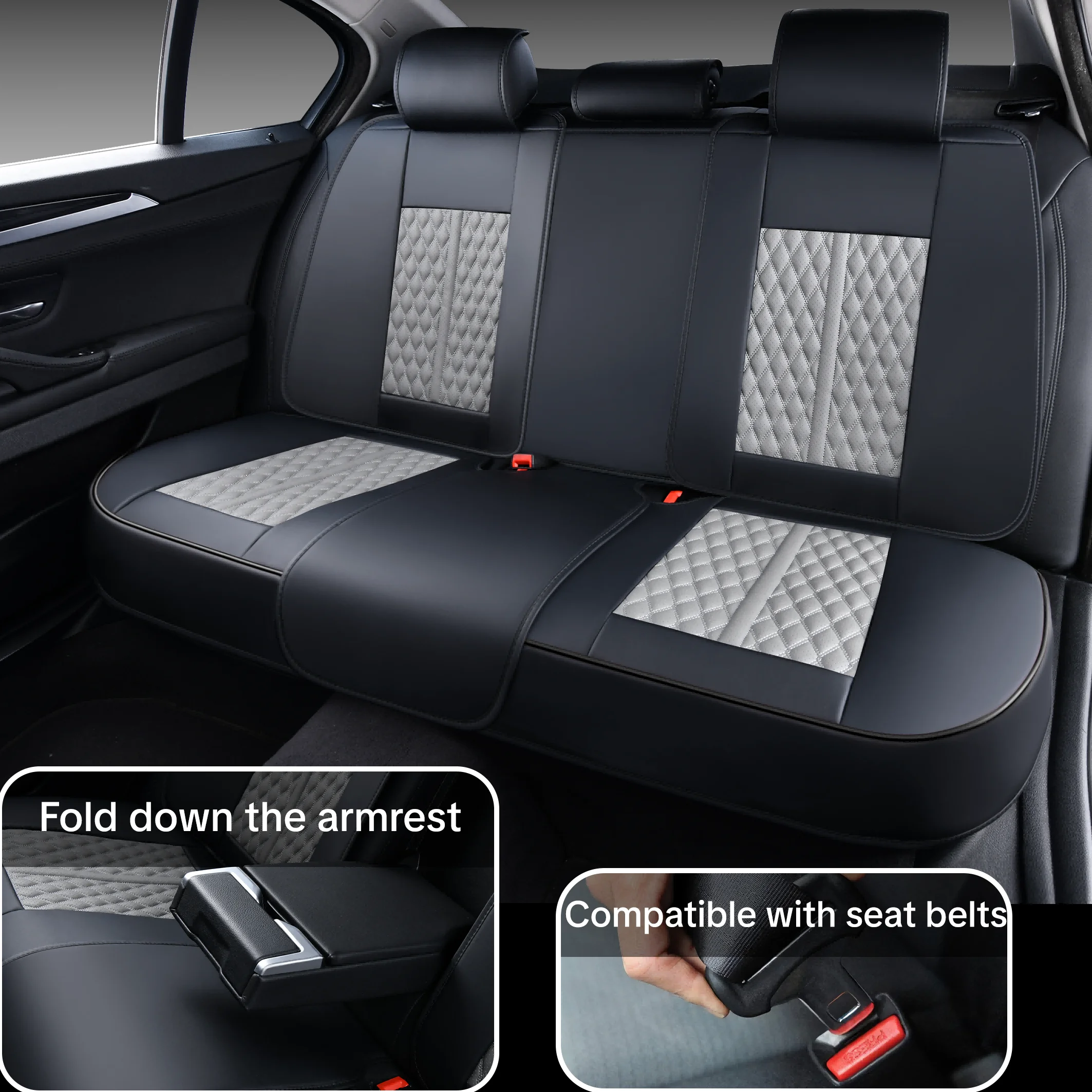 Gray Car Seat Covers For Hyundai Santa/Elantra/Sonata, Compatible With Seat Airbags, Waterproof Leather, 5-Seat Full Set