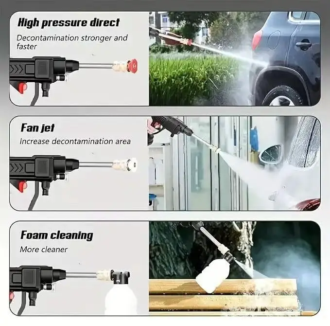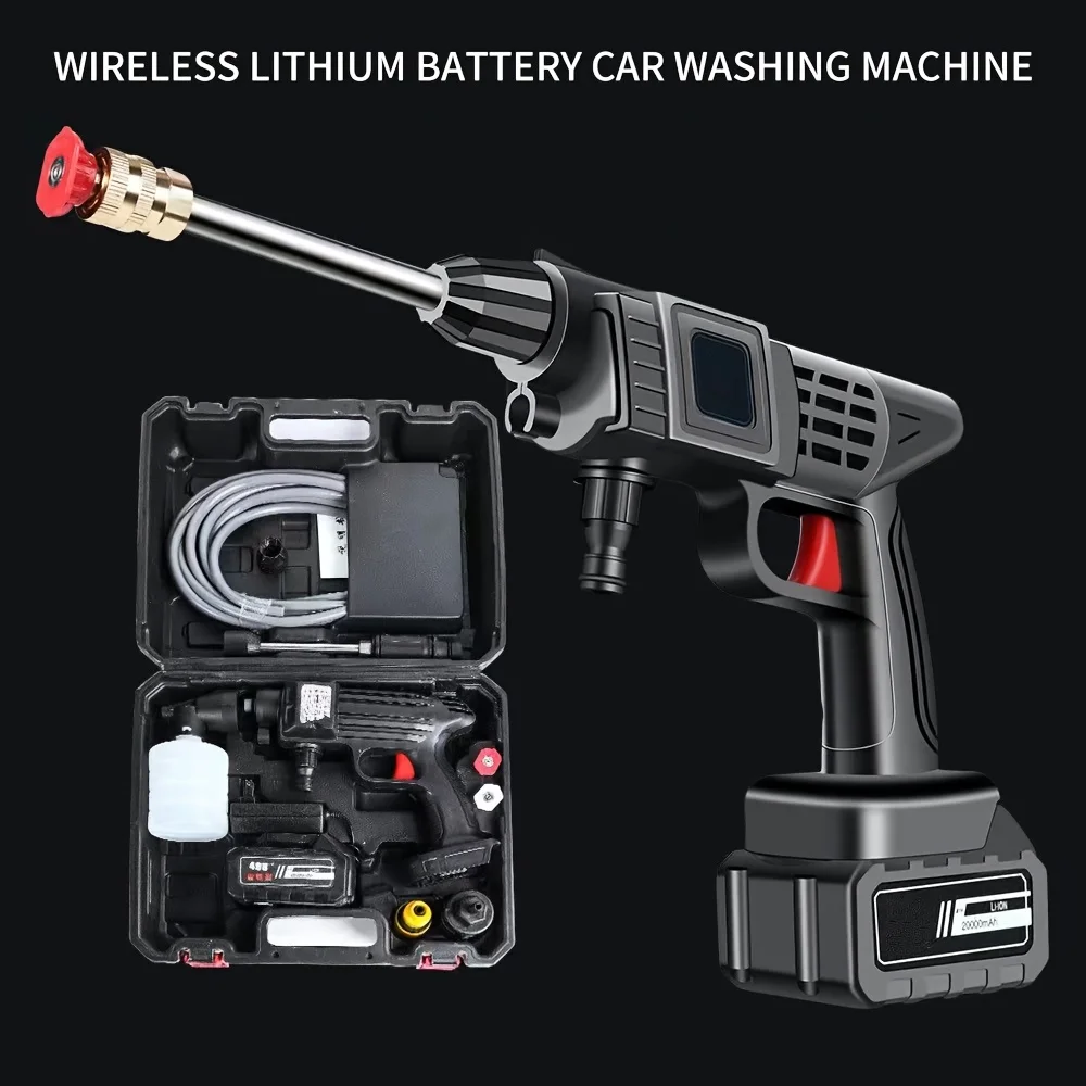 This wireless high-pressure car cleaner delivers powerful cleaning performance with the convenience of cordless operation. Designed with dual electric power and a foam spray gun, it effectively removes dirt, grime, and road residue from vehicles with strong water pressure and rich foam. Portable and easy to handle, it’s perfect for washing cars, cleaning floors, and tackling tough outdoor cleaning tasks. With wireless charging and a lightweight build, this high-voltage cleaning machine offers flexibility, mobility, and efficiency for all your cleaning needs.